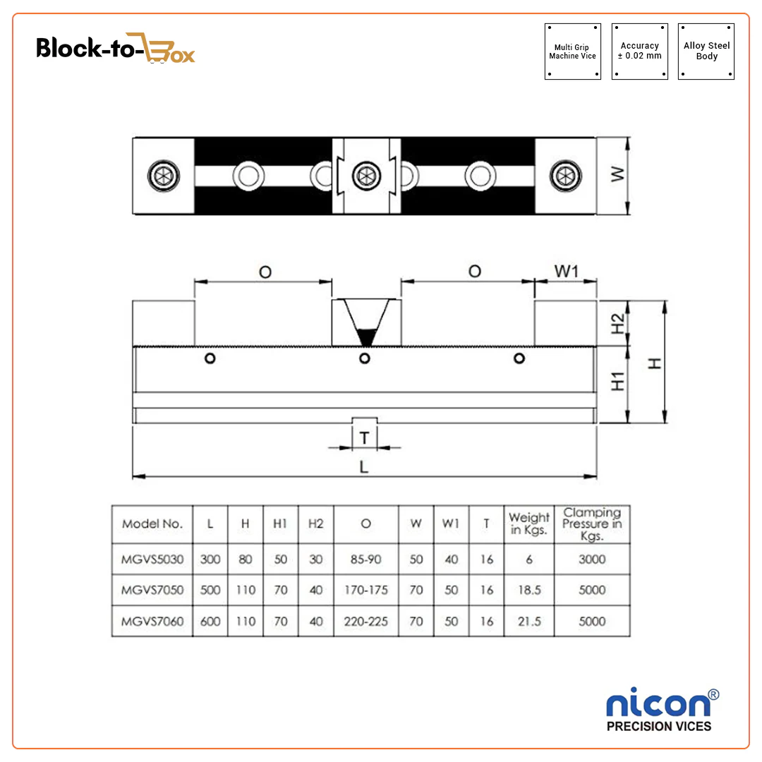 - MGVS-7050 and MGVS-7060 will supplied with 2 wedge clamps & 3 adjustable blocks.