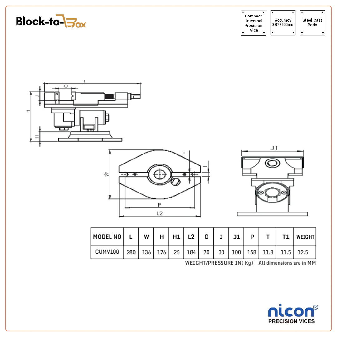 - Horizontal and vertical v groove provided for thin round jobs to hold accurately.